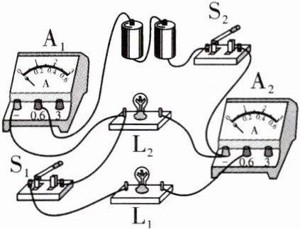 )A.电流表 $ A_1 $ 只测量灯 $ L_2 $ 的电流