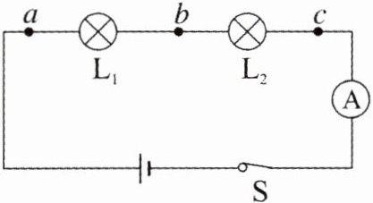 16. 小明通过实验探究串联电路中的电流关系,实验电路如图所示,闭合开关 $ S $ 后,灯