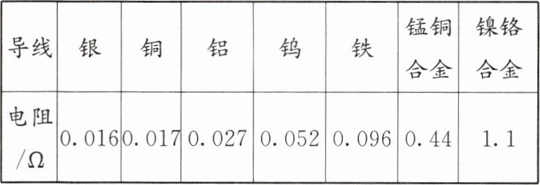 3. 下表是几种长 1m、横截面积 1mm² 的导线在 20℃时的电阻,其中导电性能最好的是