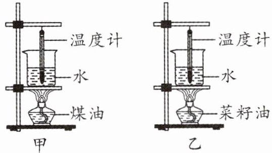 10. 小明和小华学习了燃料的热值后,他们一起设计了一个实验来探究煤油和菜籽油热值的大小关系。他们组装了如图所示的装置进行实验,为了保证实验结论的可靠性,下列措施