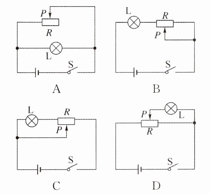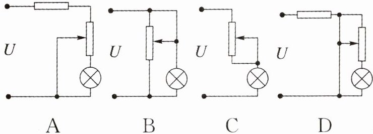 15. 如图所示是用滑动变阻器调节灯泡亮度的几种方案,你认为可能达到目的的方案是(