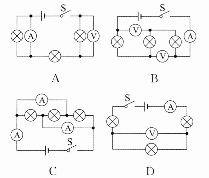 10. 在如图所示的四个电路中,三个灯泡并联的是(