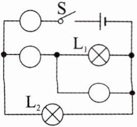 12. 在如图所示电路的〇里填上适当的电表符号。要求:闭合开关 S,两灯均能发光。