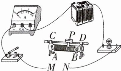9. 如图所示是未连接完整的电路,若要求闭合开关后,滑动变阻器的滑片 P 向左移动时,灯泡变亮。则下列接法符合要求的是(