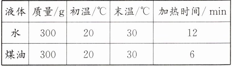 (2)分析上表中的实验数据可知:质量相同的水和煤油,升高相同的温度时,