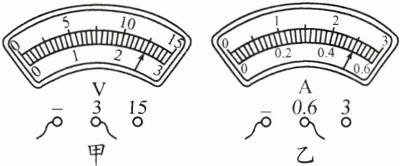 ,小安用伏安法测量电阻$ R $的阻值时,当逐渐改变滑动变阻器滑片到某一位置时,并联在电阻两端的电压表的示数如图甲所示,与电阻串联的电流表的示数如图乙所示,则电压表的示数为2.5
