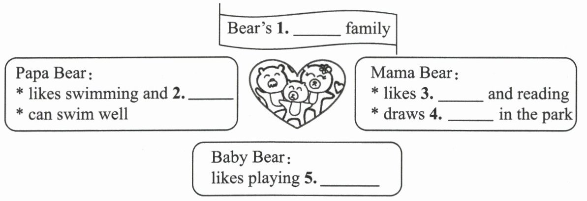 1. happy 2. fishing 3. drawing 4. pictures 5. toys