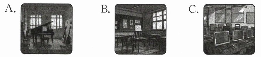 二、听录音,判断下列图片与所听内容是(T)否(F)相符。(每小题1分,共5分)