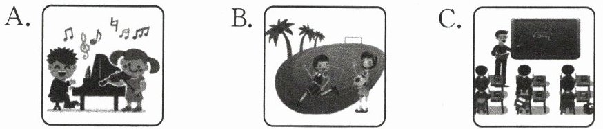 一、听录音,选择正确的图片。(每小题1分,共5分)
