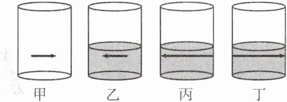 5. (2023·资阳)小明同学找来一个薄壁圆柱形玻璃杯,并将画有箭头的白纸靠在玻璃杯后,观察结果如图甲所示(白纸被玻璃杯遮住)。向杯中加水,使得水面高过箭头位置,透过玻璃杯观察纸上的“箭头”;将白纸逐渐远离杯子的过程中,观察到的情景依次是(