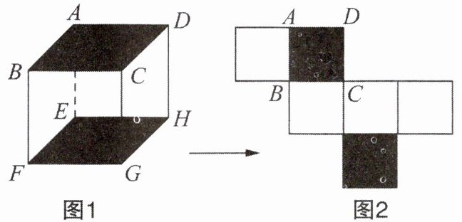 5. (2024 秋·西陵区期末)如图 1,现将正方体相对的两个面涂上阴影,再将正方体沿某些棱剪开,得到如图 2 所示的展开图,则没有被剪开的棱有(
