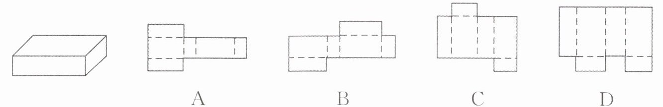 6. (2024·常德三模)将如图所示的长方体包装盒沿某些棱剪开,要使六个面连在一起,然后铺平,则得到的图形不可能是(