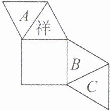 4. (2024·德阳)一同学用如图所示的纸片,沿折痕折合成一个棱锥形的“走马灯”,正方形做底,侧面有一个三角形面上写了“祥”字,当灯旋转时,正好看 到“吉祥如意”的字样.则在$A$、$B$、$C$处依次写上的字可以是(