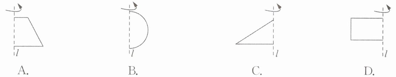 3. (2024秋·玉州区期末)下列平面图形分别绕直线$l$旋转一周,得到的几何体是球体的是(
