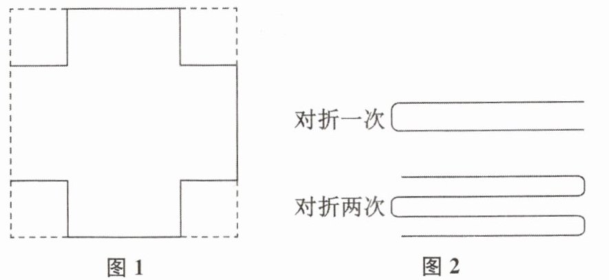 $12. (1)(2023·$朝阳区二模$)$如图$ 1 $所示:边长是$ $ $ a $$ $的正方形纸片的四个角各剪去一个边长为$ $ $ b $$ $的正方形,余下纸片的面积为