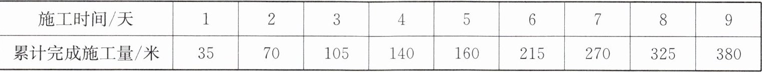 5. 甲、乙施工队分别从两端共同修一段长度为380米的公路.在施工过程中,乙队因技术改进而停工一天,之后加快了施工进度并与甲队共同按期完成了修路任务.下表是根据每天的工程进度绘制而成的.