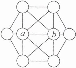 10. (2024·德阳)数学活动课上,甲组同学给乙组同学出示了一个探究问题:把数字1至8分别填入如图的八个圆圈内,使得任意两个有线段相连的圆圈内的数字相差值不等于1. 经过探究后,乙组的小高同学填出了图中两个中心圆圈的数字$a$、$b$,你认为$a$可以是