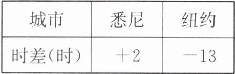 10. 纽约、悉尼与北京时差如右表(正数表示同一时刻比北京时间早的时数,负数表示同一时刻比北京时间晚的时数).当北京6月15日23时,悉尼、纽约的时间分别是