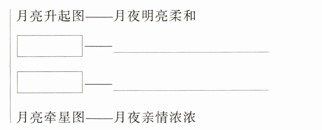月下溪边图——月夜溪水潺潺;月下田园图——月夜丰收喜悦