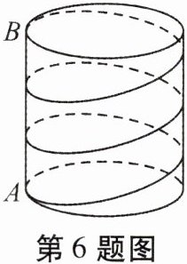 6. 如图,圆柱的底面半径为$\frac{5}{2\pi}$cm,高为36cm,点A,B分别是圆柱两底面圆周上的点,且点A,B在同一高线上,用一根棉线从点A顺着圆柱侧面绕3圈到点B,则这根棉线的长度最短为