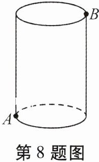 8. 如图,一圆柱高15cm,底面半径为$\frac{20}{\pi}$cm,一只蚂蚁从点A爬到点B处吃食,要爬行的最短路程是多少?