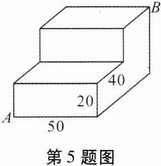 5. 如图是一个二级台阶的示意图,每一级台阶的高是20cm,长是50cm,宽是40cm,一只蚂蚁沿台阶从点A出发爬到点B,其爬行的最短路线的长度是