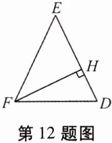 12. 如图,$\triangle DEF$为等腰三角形,$EF = ED$,$FH \perp ED$,$DH = 2$,$FH = 4$,求$EF$的长。