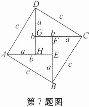7. 如图是中国最早的一部数学著作——《周髀》中记载的赵爽弦图,是由四个全等的直角三角形拼成的图形. 我国古代数学家用它来证明勾股定理,请根据该图提供的信息证明勾股定理.