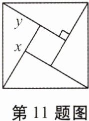 11. 我国汉代数学家赵爽利用一幅“弦图”,证明了勾股定理,后人称该图为“赵爽弦图”. 如图,“赵爽弦图”是用 4 个全等的直角三角形与 1 个小正方形镶嵌而成的正方形图案. 如果该大正方形面积为 49,小正方形面积为 4,用 x,y 表示直角三角形的两直角边 (x > y),下列四个推断:① $x^{2}+y^{2}= 49$;② x - y = 2;③ $2xy + 4 = 49$;④ x + y = 7,其中正确的有