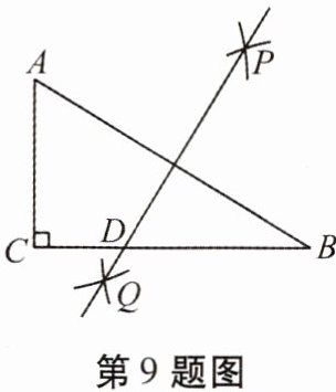 9. 如图,在 Rt△ABC 中,∠C = 90°,AC = 3,BC = 5,分别以点 A,B 为圆心,大于 $\frac{1}{2}AB$ 的长为半径画弧,两弧交于点 P,Q,作直线 PQ 交 BC 于点 D,求 CD 的长.