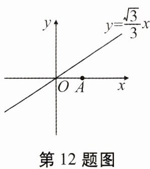 12. 如图,在平面直角坐标系中,点 $ A $ 的坐标为 $ (1, 0) $,在直线 $ y = \dfrac{\sqrt{3}}{3}x $ 上取点 $ P $,使 $ \triangle OPA $ 是等腰三角形,则所有满足条件的点 $ P $ 的坐标为