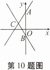 10. 如图,在平面直角坐标系中,直线 $ y = 2x + 3 $ 与 $ y $ 轴交于点 $ A $,直线 $ y = kx - 1 $ 与 $ y $ 轴交于点 $ B $,与直线 $ y = 2x + 3 $ 交于点 $ C(-1, n) $。