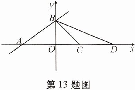 13. 如图,在直角坐标系 $ xOy $ 中,一次函数 $ y = \frac{\sqrt{3}}{3}x + 1 $ 的图象与 $ x $ 轴、$ y $ 轴分别交于 $ A $,$ B $ 两点,点 $ C $ 的坐标为 $ (1, 0) $,点 $ D $ 在 $ x $ 轴上且在点 $ C $ 右边,$ \angle BDC = \angle CBD $,求点 $ D $ 的坐标与 $ \triangle ABD $ 的面积。