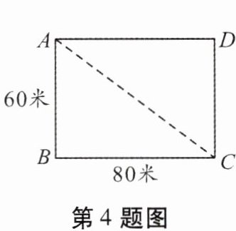 4. 如图是一块长为80米,宽为60米的长方形菜地ABCD,王大伯要从A处到C处去,则沿AC比沿AB→BC少走