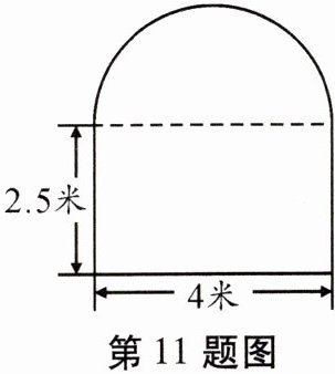 11. 如图,某隧道的横截面由半圆和长方形构成,其中长方形的长为4米,宽为2.5米。一辆装满货物、宽为2.4米的卡车(横截面为长方形),欲通过该隧道,则卡车的高必须低于