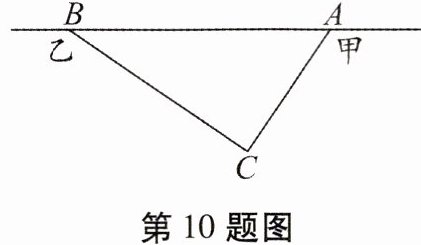 10. 如图,在甲村至乙村的公路旁有一块山地正在开发,现C处需要爆破,已知C处与公路上的停靠站A的距离为300米,与公路上另一停靠站B的距离为400米,且CA⊥CB,为了安全起见,爆破点C处周围半径250米范围内不得进入,问在进行爆破时,公路AB段是否有危险?是否需要暂时封锁?请通过计算进行说明。