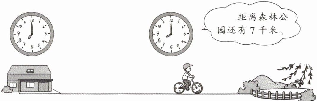 4. 小强是一个骑行爱好者,他家距离森林公园21千米。星期天的早晨,他骑自行车去森林公园游玩。