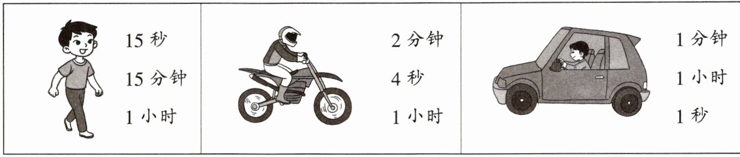 1. 选出行1千米所用的时间,圈一圈。