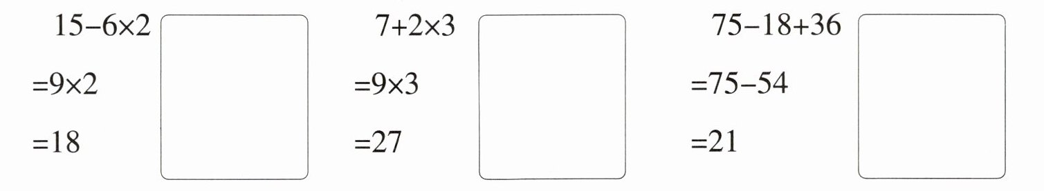 (3)结合上图,写出算式 $ 20 - 2×4 $、$ 9×3 - 20 $、$ 5 + 9×2 $ 分别表示什么意思。