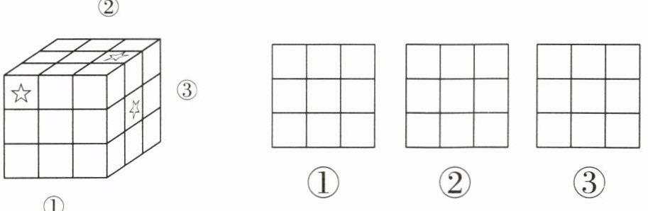*3. 下面几幅图分别是从①②③号哪个位置观察到的魔方,请你把☆填入正确的位置上。