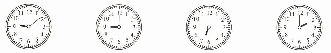 1. 小明画出了一天中钟面显示的四个时间,哪个钟面上时针和分针组成的夹角最大,在横线上画“√”;哪个夹角最小,在横线上画“○”。