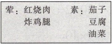 快餐店规定:一份盒饭可以配一个荤菜和一个素菜。