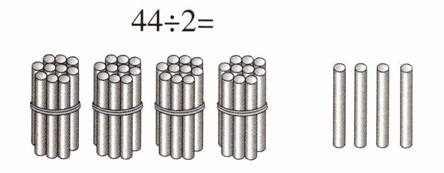 44÷2=22 40÷2=20 4÷2=2 20+2=22