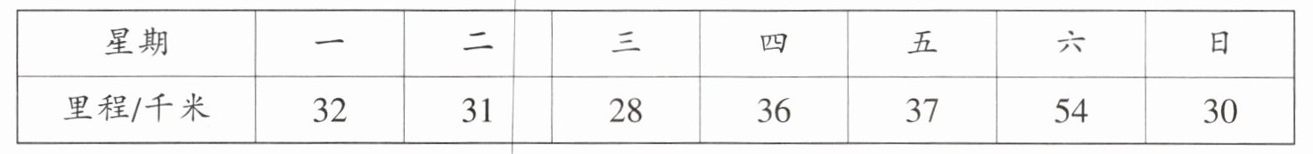 5. 奇思爸爸每天开小汽车出行,奇思帮爸爸连续记录了这一周每天行驶的里程数。