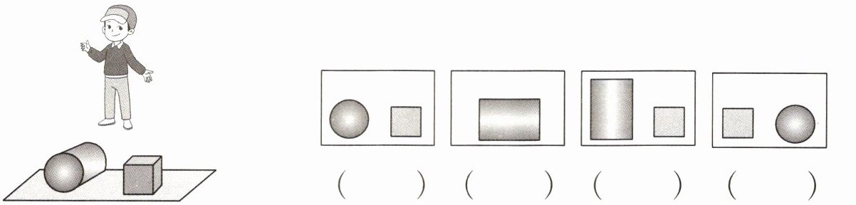 4. 小培看到的是哪幅图呢?在括号里画“√”。