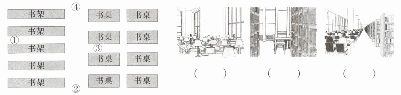 5. 你能找出下列图片分别是站在图书馆的什么位置拍摄的吗?