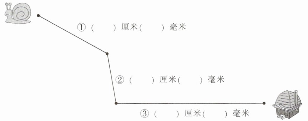 11. 下面是蜗牛回家爬过的三段路线,量一量各是多长。