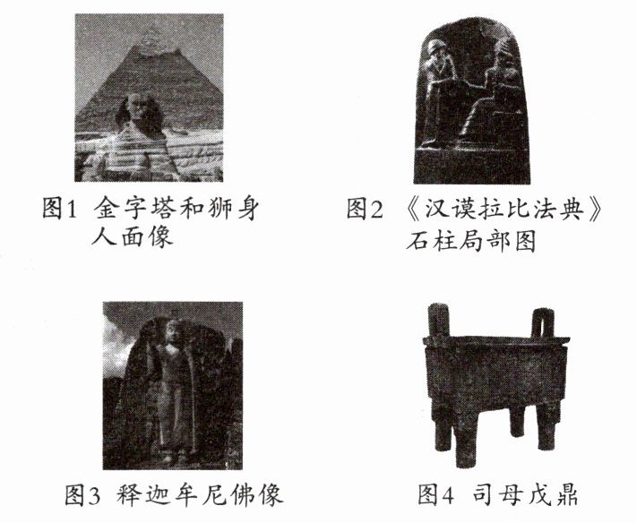 (1)(示例)选择图片1。金字塔是古埃及文明的象征,反映了古埃及社会经济发展的较高水平,是古埃及人智慧的结晶,可以作为研究古埃及历史的第一手史料。