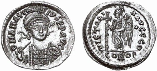 8. 史料实证 下面是从中国北魏墓葬中出土的拜占庭帝国阿纳斯塔修斯一世时期的金币,这种金币在中国出土数量很多。这在一定程度上印证了(