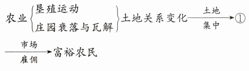 例 1 下面是某同学在预习《西欧经济和社会的发展》一课时设计的部分知识结构图,其中①处应填入的内容是(